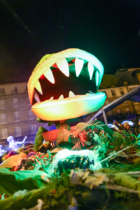 El público respondió con entusiasmo: gritos, risas y aplausos acompañaron a los artistas durante todo el recorrido. Muchos niños incluso interactuaron con las criaturas, creando momentos mágicos que rompieron la barrera entre escena y espectador.