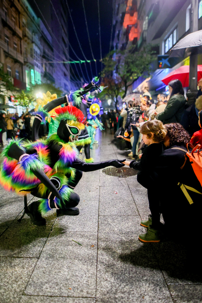 El desfile recorrió el centro de Ourense con una puesta en escena vibrante: música, luces LED, coreografías y personajes animatrónicos que sorprendieron a grandes y pequeños.